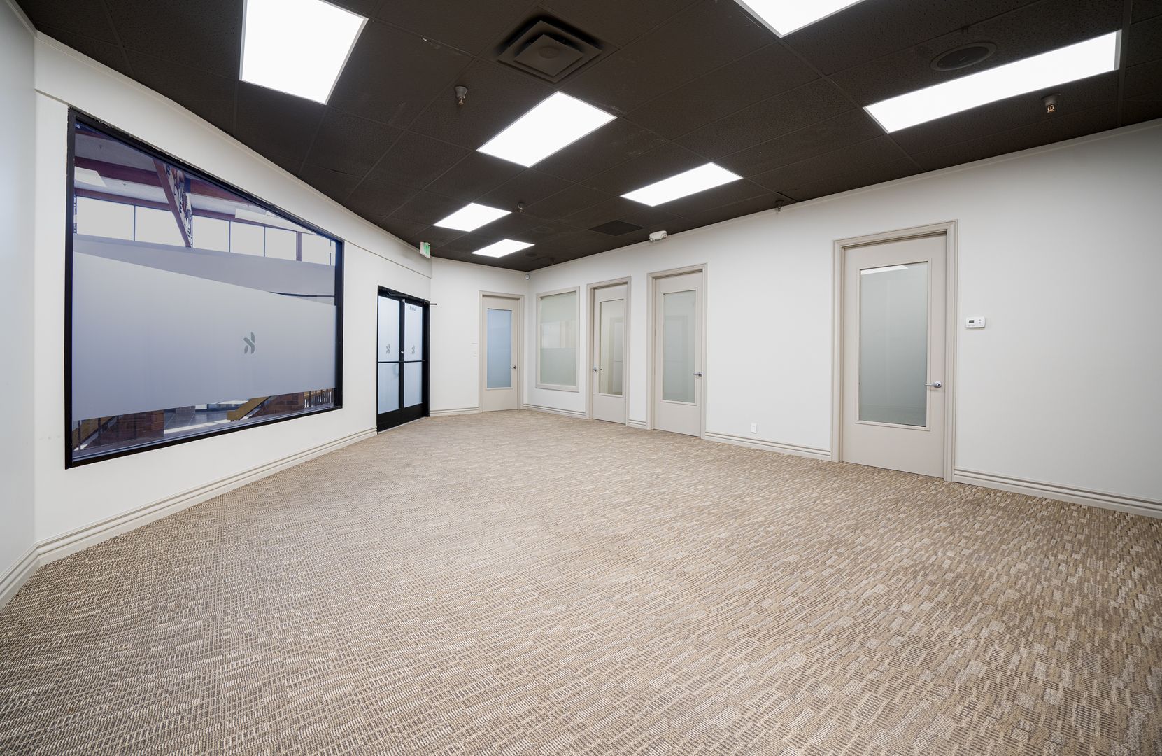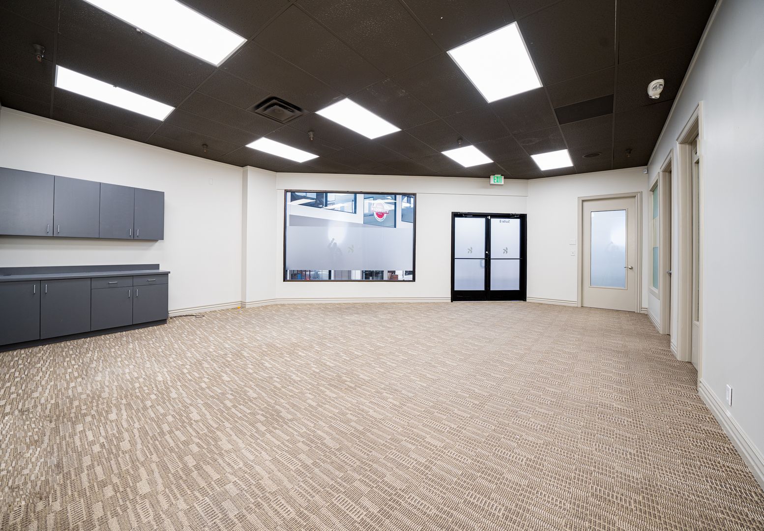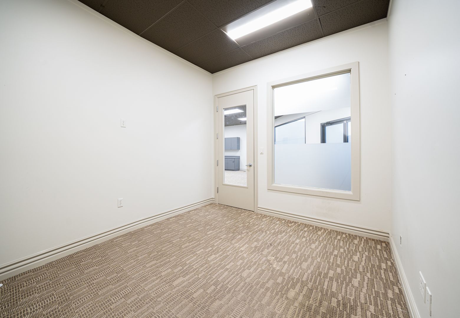 This office suite has 2 large private offices, 2 - 2 person offices.. There are great restaurants nearby: Citris Grill, Barbacoa, Einstein's, Subway, Wing Coop and Kobe Sushi.