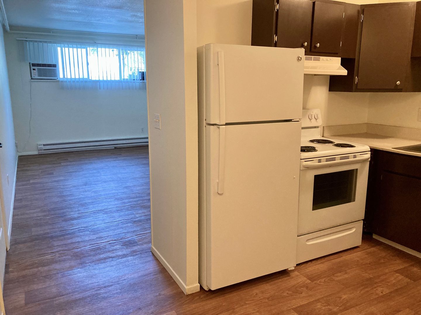 The apartments at Indigo have large windows and hard surface flooring in the kitchen and living room; making it easy to keep clean, even with pets. The two bedroom apartments have a kitchen that opens out into the living room and the one bedroom apartments have a large eat-in kitchen. Some of the amenities at Indigo include: a keyed entry, an onsite laundry facility, online rent pay, and recycling; we even offer glass recycling.